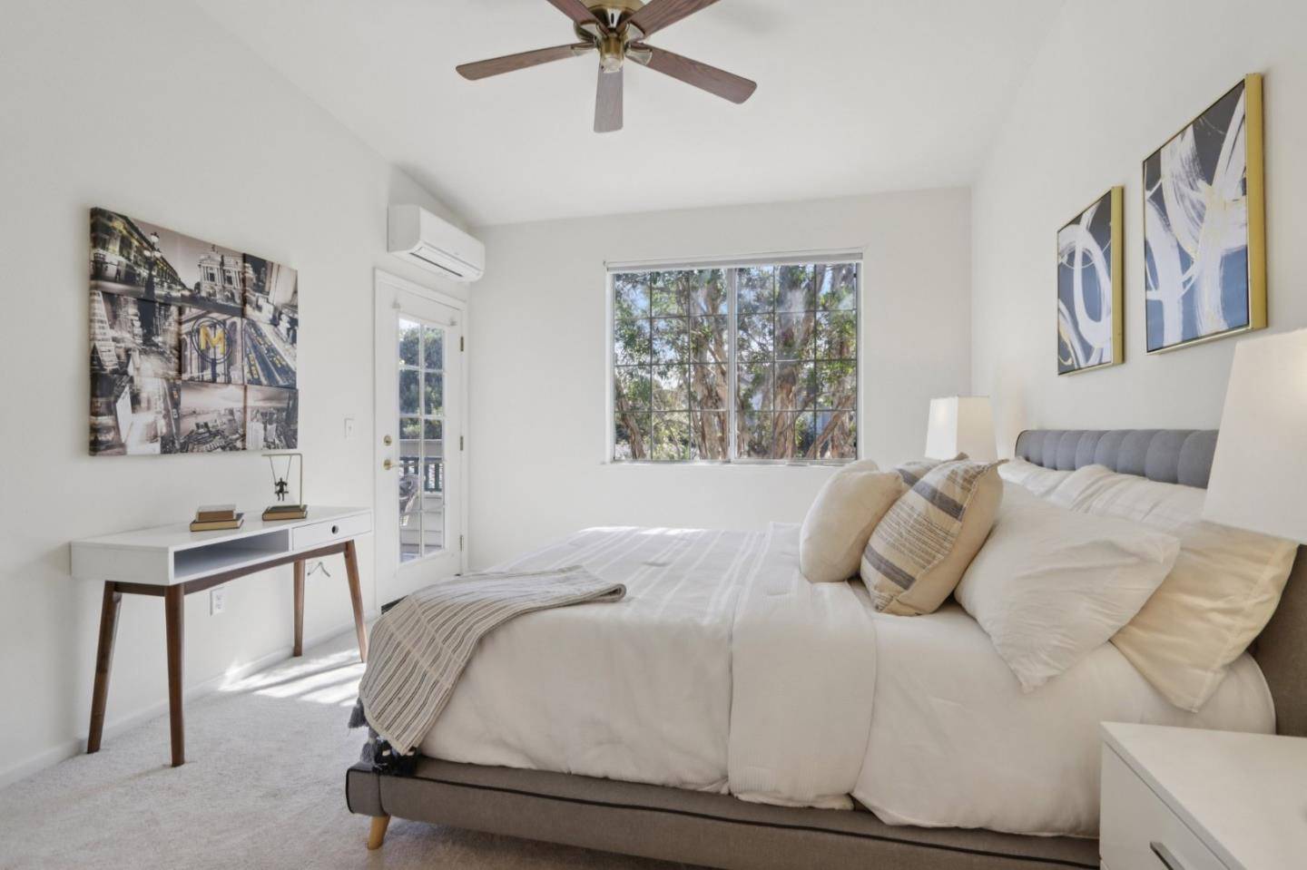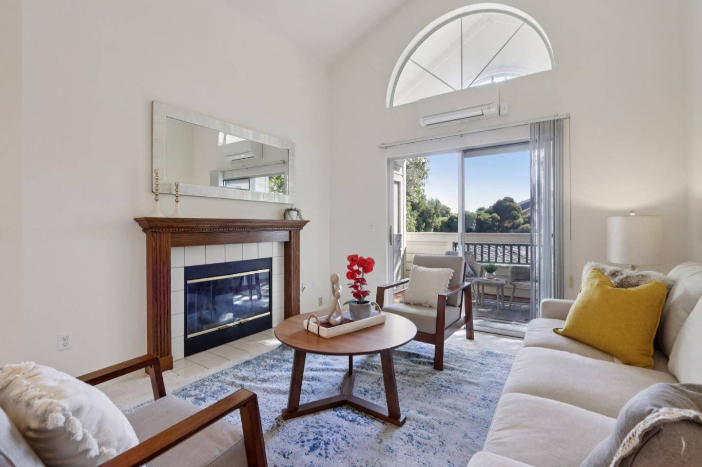 Welcome to this bright and spacious 2-bedroom, 2-bath condo located in beautiful Redwood Shores. A highly desirable top-floor end unit with soaring ceilings in the living room creates an airy open atmosphere. The open-concept layout features a comfortable living area, defined dining space, and a modern kitchen perfect for both entertaining and everyday living. Step out onto your private, spacious balcony ideal for morning coffee or unwinding at sunset. Both bedrooms are generously sized, with the primary bedroom also having access to the balcony. New carpet and paint throughout. The unit also includes in-home laundry for your convenience. Enjoy the serenity of a peaceful, landscaped community complete with a pool and spa and close to walking trails. A detached one-car garage adds convenience and storage. Just a short stroll to The Marketplace at Redwood Shores, offering shopping, dining, and cafes to meet your daily needs. Top-rated schools and easy access to Highway 101 complete this exceptional offering. Don't miss this rare opportunity to live in one of the Peninsulas most sought-after neighborhoods!