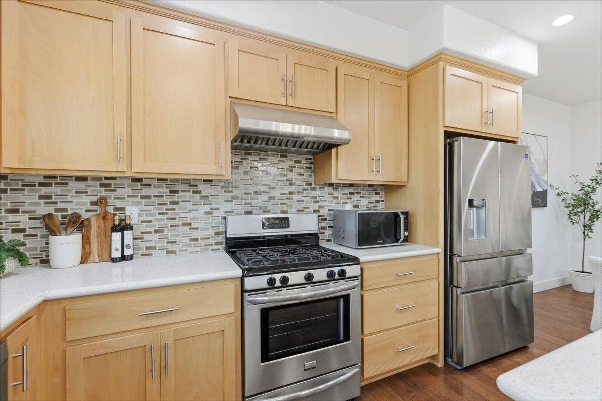 Beautiful 2017-built end-unit townhome in prime Sunnyvale! This bright and modern 3-bedroom, 3.5-bath home (1,653 sq ft) offers an open-concept layout with abundant natural light and approximately $75k in builder upgrades, including hardwood flooring in the kitchen/living room area. The gourmet kitchen features expansive counter space and flows seamlessly into the family room perfect for entertaining. Energy-efficient home: HVAC has dual zone control! The desirable floor plan includes a full bedroom suite on the ground level, ideal for guests or a home office, with two additional spacious bedrooms upstairs for added privacy. Built by renowned builder D.R. Horton, the home showcases quality craftsmanship and contemporary design. Located just minutes from downtown Sunnyvale and major tech employers, this community also offers outstanding HOA amenities: a courtyard garden, clubhouse, kids playground, plentiful parking, and convenient trash pickup at your garage door. A rare opportunity to own a bright, upgraded, amenity-rich end unit in a highly desirable neighborhood!